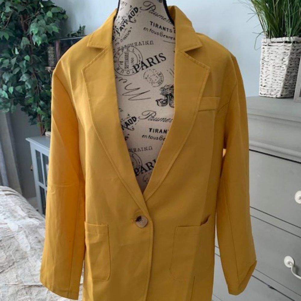 New yellow/mustard/gold-ish lightweight blazer with single button.