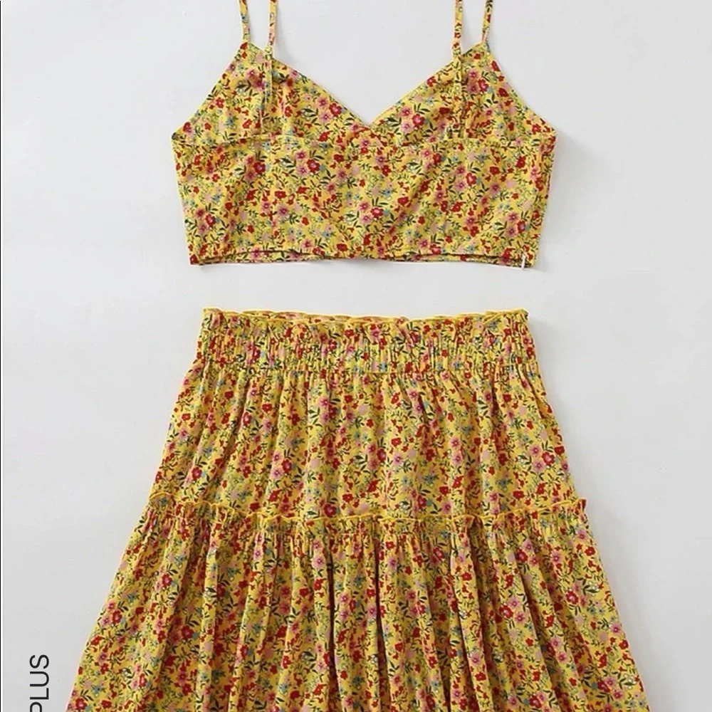 SHEIN Plus Ruched Bust Ditsy Floral Cami Top & Frilled Skirt Set