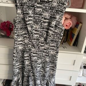 Black and white a line fitted DVF dress great for work