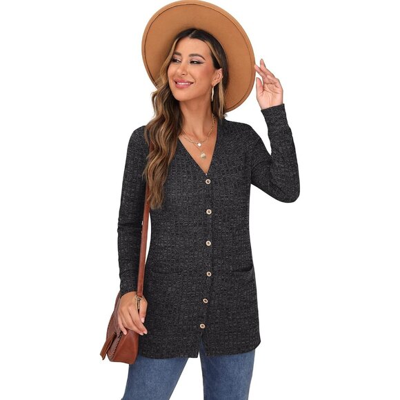 Grecerelle Womens Gray Open Front Button Down Ribbed Knit Lightweight Sweaters