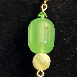 A large Green Aventurine barrel bead accented with Green Glass and Agate