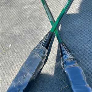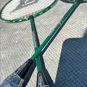 Enjoy a game of badminton with this stylish green racket set. Perfect for outdoor fun.