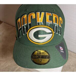 Green Bay Packers New Era 59FIFTY Fitted Hat Embroidered Cap Sz 7 READ