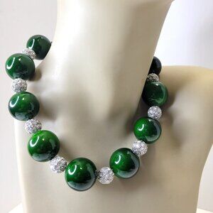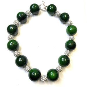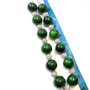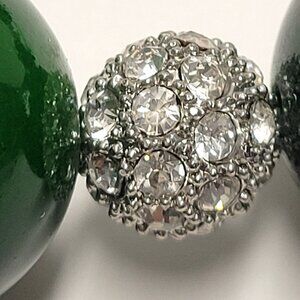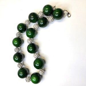 Very large green ball beads interjected with shimmering rhinestone ball beads