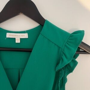 Size SMALL. Elastic waistline with tie. Emerald green, flutter sleeve. Like new.