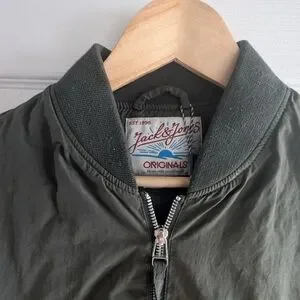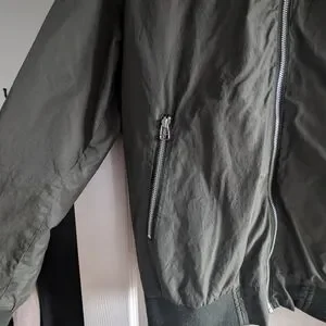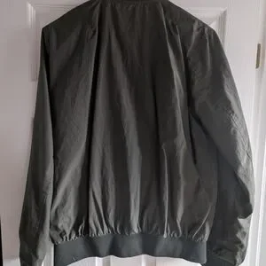 Stylish and versatile green bomber jacket for men. Perfect for casual outings and adding a touch of style to any outfit. Fits similar to a woman's medium-large for a tighter fit.