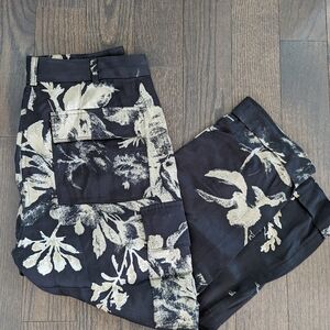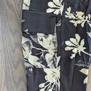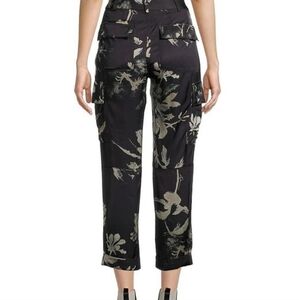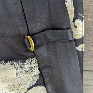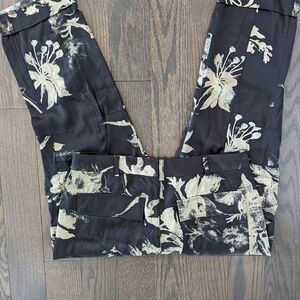 Gorgeous pajama-inspired satin dress pants in two-tone feature a printed pattern with cargo-flap pockets and a rolled cuff. Belt loops. Button slide closure and zip fly. Four-pocket style. Printed. Viscose. Machine wash.