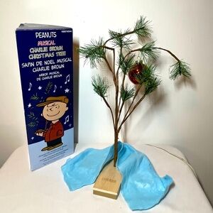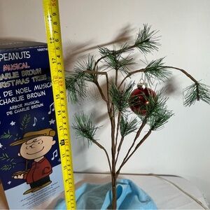 Embrace the holiday spirit with this charming Charlie Brown PEANUTS tree, featuring a minimalist design with sparse green branches and a single red ornament.