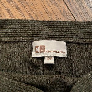 Green Costa Blanca Sweater with semi dolman slit sleeves with a boat neck line.