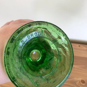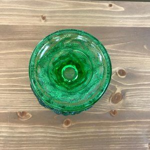 Green Crinkle Glass Widemouth Pedestal Vase Vintage EO Brody Flower Bowl A102
