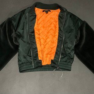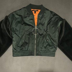 Women's H&M Green Crop Bomber (W/ Faux Fur Sleeves)