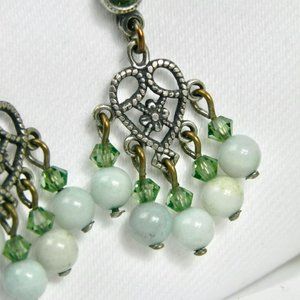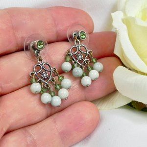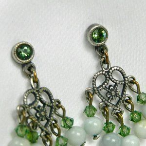 Green Crystal and Silver Dangling Earrings