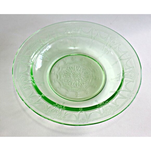 Green Depression Glass Cameo Ballerina Flat Soup Bowl Anchor Hocking Vintage Ura