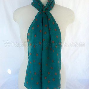 Green “Dotty” chiffon polka dots $6.99 Shipping neck/head scarf 25X58" Larg NWOT