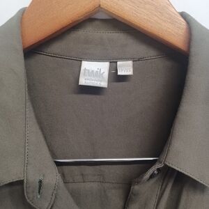olive green sleeveless mini dress with a classic collar and side pockets.