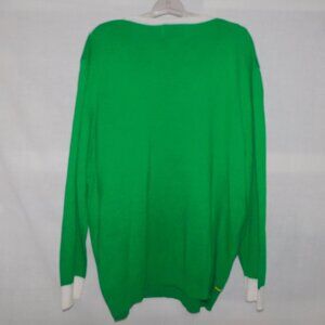 This Mens XL Green Elf Costume Christmas Holiday Sweater is in great clean bright condition. Sweater is 100% Acrylic - Machine washable.