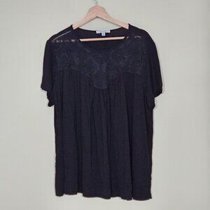 Green Envelope Top Womens 3X Black SS Lace Flowy Stretch USA Whimsigoth Cottage