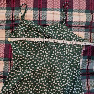 Bust: 17" flat, stretches to 19" Light summer dress in excellent condition, with zipper at back.