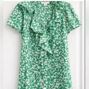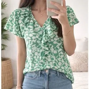 Beautiful Banana Republic blouse in a fresh green and white print.