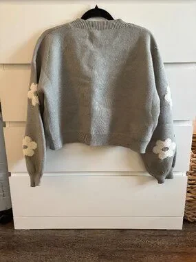 Debut green sweater with white flowers. Cropped fit. Like new!