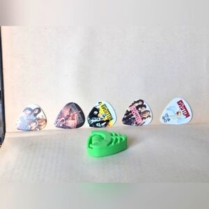 Green Guitar Pick Holder with Band Picks