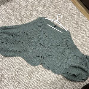 Stylish green knit poncho with a unique pattern. Perfect for layering. Small bit can fit more sizes