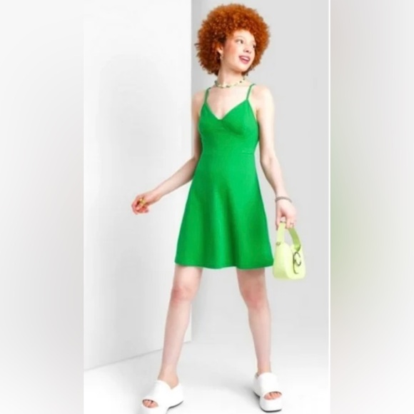 Green Knit Ribbed Mini Dress