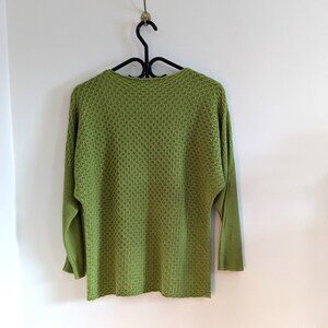 A soft, delicate knit and gorgeous sweater to pair either with jeans, dressed pants or a skirt. I’m missing some info on this item (brand, etc.) because all of its labels were itchy… and I took them off. Absolutely hate itchy labels!