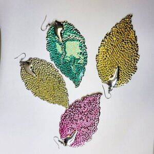 Green Leaf Earrings Statement Earrings Boho Earrings