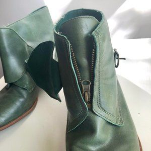 Green Leather Monk Strap Ankle Boots