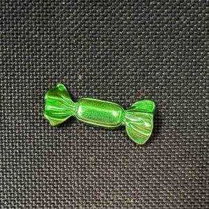 Shiny metallic green wrapped candy pin.