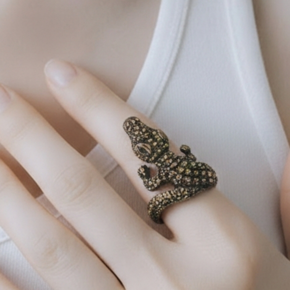One of a kind, gorgeous alligator wrapped around to create the ring.
