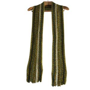 Green Orange White Knitted Fringe Striped Scarf