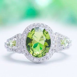 Green Peridot Gemstone ring, size 7, 925 Sterling Silver Charmed Aroma