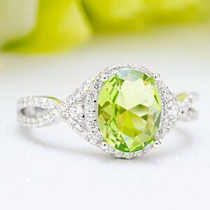 Green Peridot Oval ring, 925 Sterling Silver Charmed Aroma Birthstone Collection