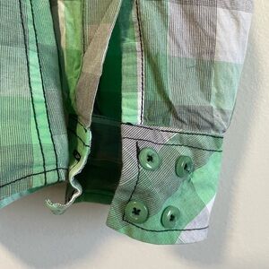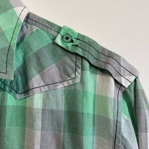 Green Plaid Button Down Western Style Shirt