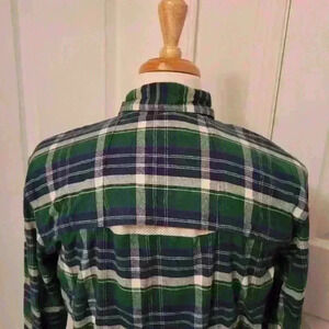 Green Plaid Flannel Shirt M Backpacker Outdoor Trail Shirt Rugged Forestcore