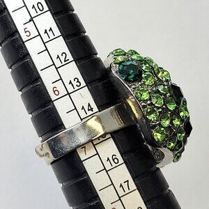 Dark and Lime Green Rhinestone Adjustable Large Ring