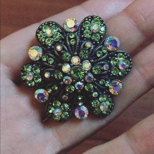 Green Rhinestone Brooch