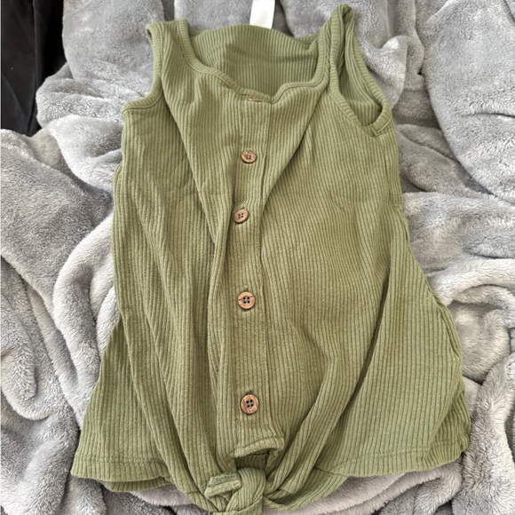 Stylish green ribbed tank top with button-down front. Perfect for casual wear.