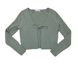 Cozy green ribbed knit cardigan! fits small - medium