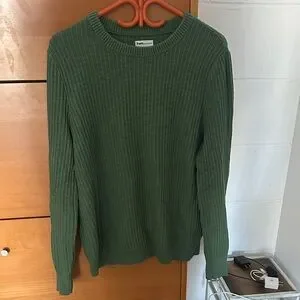 Stay warm and stylish with this green ribbed sweater. Perfect for any casual outing.