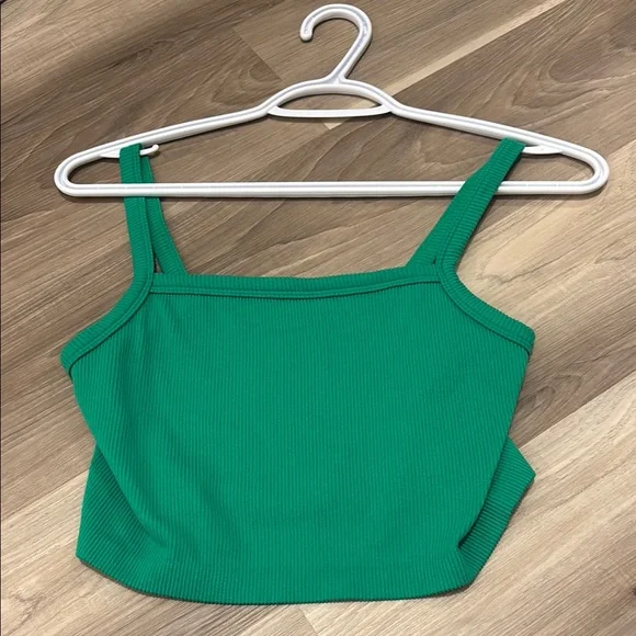 Elevate your wardrobe with this chic green ribbed tank top. Perfect for casual outings or layering.