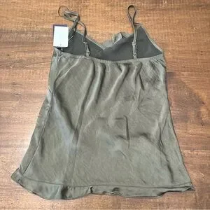 Stylish olive green camisole with ruffle detail. Perfect for casual wear or a night out!