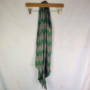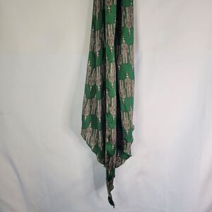 Vibrant green slim satin feel scarf featuring a unique police officer print. Perfect for adding a playful touch to any outfit around the neck or tied in a hair bow. EUC