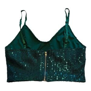 Green Sparkly Sequin Camisole Sleeveless Adjustable Spaghetti Straps Size Small