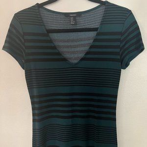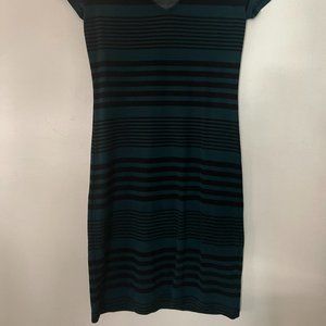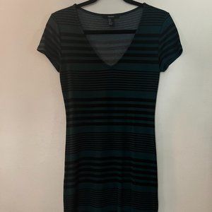 Beautiful dark green striped bodycon dress with v neck. Short sleeve.