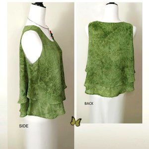 Refreshing Green Swing Tank Top, Scoop Neck, Soft Georgette Material, Double-layered Design (Front & Back), Abstract Print, Sleeveless, Loose Fit, Formal/Casual Style, must have item for spring and summer. Brand: LeeCheong