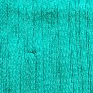 small pull (see picture) when you put on the top it's not visible, fabric stretches it out