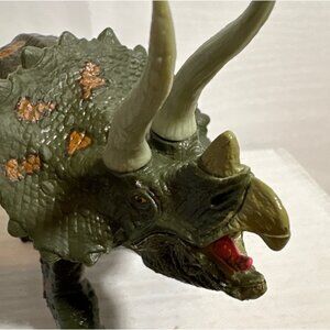 A detailed triceratops figurine with textured skin and lifelike features. Excellent for educational purposes, dinosaur collections, or as a display piece.